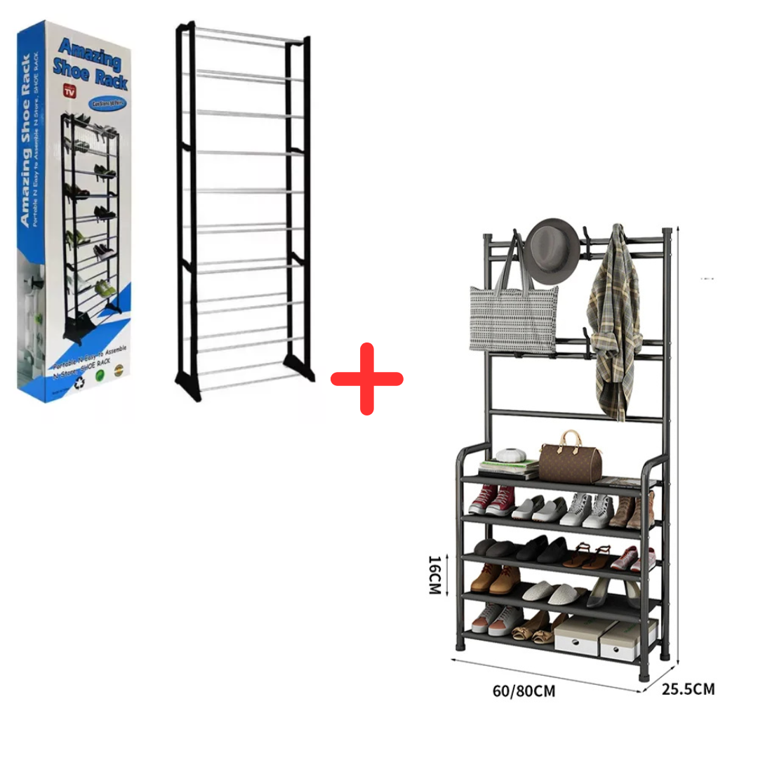 Cómoda e ingenioso zapatero para organizar hasta 30 pares de zapatos(*). La zapatera es compacta, con tubos horizontales metálicos para mejorar la resistencia y estructura en plástico que le da versatilidad en su diseño, ya que puedes agregar o quitar divisiones según sean los diseños de tus zapatos. Es fácil de instalar y se adapta perfectamente a cualquier espacio por reducido que sea. Los niveles con los que dispone la zapatera, le brindan el espacio que necesita para organizar sus zapatos de manera práctica y sencilla. Olvídese de tener los zapatos de sus hijos tirados bajo la cama o extraviados en el closet, ahora téngalos bien organizados.Especificaciones:Armable y apilable hacia arriba. Viene por secciones para armar.Capacidad: 30 pares de zapatos (depende del tamaño de los zapatos. Botas y zapatos grandes pueden caber muchos menos)Tubos metálicosEstructura de plástico. Parales horizontales metálicos El Perchero Multifuncional con Zapatero de 5 niveles es el complemento perfecto para mantener tu hogar organizado y con estilo. Con su elegante color negro y su diseño moderno, este perchero se adapta a cualquier tipo de decoración.Fabricado con materiales metálicos de alta calidad, este perchero es resistente y duradero, garantizando una larga vida útil. Sus 5 niveles de estantes y cajones ofrecen amplio espacio para colgar abrigos, chaquetas, bolsos y zapatos, manteniendo todo en orden y al alcance de tu mano.Además, su diseño multifuncional te permite utilizarlo como zapatero, ahorrando espacio y manteniendo tus zapatos organizados y protegidos. Su tamaño de 170x60 cm lo convierte en una opción ideal para espacios reducidos, como apartamentos o dormitorios.No pierdas la oportunidad de adquirir este práctico y elegante perchero multifuncional. ¡Ordena tu hogar de manera eficiente y con estilo!