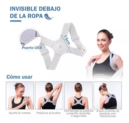 El corrector de postura eléctrico con sensor ajustable es tu aliado perfecto para mantener una postura adecuada durante todo el día. Su innovador diseño cuenta con un sensor que detecta cuando tu espalda no está recta, activando automáticamente una vibración suave que te recuerda corregir tu postura. Ajustable y recargable, este dispositivo te brinda comodidad y eficacia en cada uso, ayudándote a prevenir dolores y molestias derivados de una mala postur