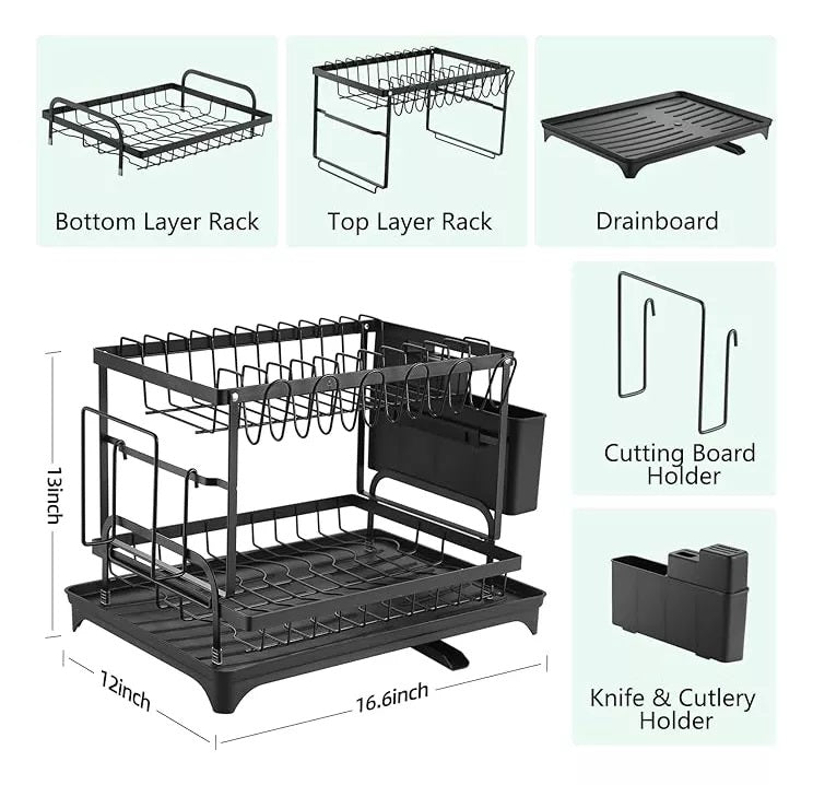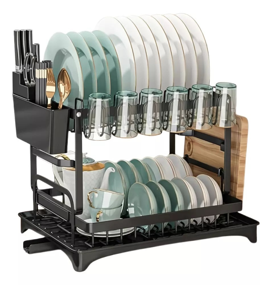 Escurridor Organizador Loza Drenaje Agua Platos Vasos Cocina Escurridor de Platos de Dos Niveles con Soporte para VasosSu diseño de dos niveles optimiza al máximo el espacio en la encimera, permitiendo secar más utensilios de cocina en menos espacio, sin comprometer la organización y el orden.DESCRIPCIÓNEste escurridor de platos de dos niveles es la solución perfecta para organizar y secar eficientemente tus utensilios de cocina. Diseñado para maximizar el espacio en tu cocina, cuenta con dos niveles que permiten separar platos, vasos y cubiertos, optimizando el almacenamiento y facilitando el secado sin ocupar demasiado espacio en la encimera. Incluye un soporte para vasos y ganchos laterales para colgar tazas o utensilios pequeños, lo que añade versatilidad a su diseño. Ideal para cocinas pequeñas o para quienes buscan mantener el orden en el hogar, este escurridor es fácil de ensamblar y está fabricado con materiales resistentes, asegurando una larga durabilidad. Es una opción práctica para mantener tu cocina organizada y limpia, mientras tus utensilios se secan al aire libre de manera higiénica.CARACTERÍSTICAS-Dos niveles para mayor capacidad.-Soporte para vasos integrado.-Ahorra espacio en la cocina.-Diseño con ganchos para tazas y utensilios.-Fácil de ensamblar.-Materiales resistentes y duraderos.-Base con bandeja para recoger el agua.-Compatible con platos, vasos y cubiertos.-Ideal para cocinas pequeñas.-Diseño moderno y compacto.QUE INCLUYE LA COMPRAX1 escurridorGARANTÍA ¿Tu producto tiene alguna novedad que debamos reportar?* Una vez recibas tu producto, cuentas con máximo 5 días para reportar a Soporte: piezas faltantes, rotas o cualquier novedad que presente el producto.*¿No era lo que esperabas?* Aplica Ley retracto Durante 5 días, contados a partir de la recepción del producto, para la devolución, ten en cuenta que debe estar en las condiciones que se recibió, con su empaque original, con las etiquetas, sellos de seguridad, y contar con todas sus partes y/o accesorios. Sin rayones ni manchas. Se recibirá únicamente en óptimas condiciones. Se anulará automáticamente el derecho a retracto si el producto fue usado.*¿Tu producto está presentando fallas?* Cuentas con 30 días de garantía por funcionamiento y/o daños del producto que no estén relacionados a su mal uso. Para hacer efectiva la devolución, el producto debe entregarse debidamente protegido cuidando el estado del empaque original, incluir todos los documentos y/o manuales (si aplica) y las partes completas
